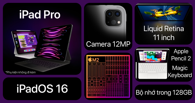 iPad Pro M2 chính hãng với chip Apple M2 mạnh mẽ, màn hình Liquid Retina cao cấp, hỗ trợ Apple Pencil & Magic Keyboard. Lựa chọn lý tưởng cho công việc chuyên nghiệp.