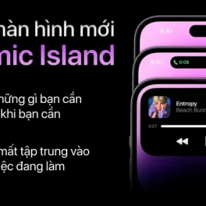 Điểm nhấn nổi bật nhất trên iPhone 14 Pro chính là Dynamic Island – thay thế hoàn toàn tai thỏ truyền thống. Dynamic Island giúp hiển thị thông báo, chỉ đường, cuộc gọi, phát nhạc hay các tác vụ nền một cách trực quan, thông minh và linh hoạt hơn, nâng tầm trải nghiệm sử dụng hằng ngày.