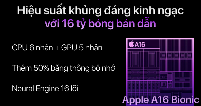 Hiệu năng mạnh mẽ với chip A16 Bionic