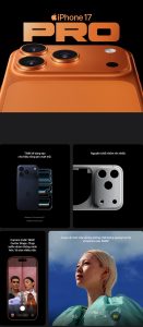 Đại diện cho phân khúc cao cấp nhất của Apple, iPhone 17 Pro là sự kết hợp hoàn hảo giữa thiết kế sang trọng – hiệu năng vượt trội – camera chuyên nghiệp. Tại The Phone Atelier, iPhone 17 Pro không chỉ là một thiết bị công nghệ, mà còn là biểu tượng của đẳng cấp, sự tinh tế và trải nghiệm Apple trọn vẹn dành cho người dùng yêu cầu cao nhất.